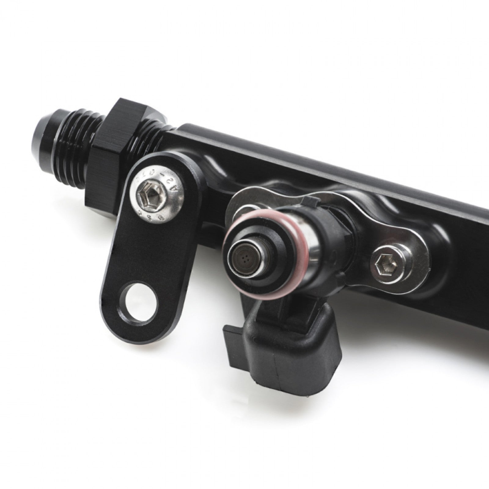 A Nuke Performance unique feature is the injector safety clips that ensure the injectors maintain a perfect sealing even during extreme fuel pressure usage. Whether during assembly, install on the engine or in the unfortunate case of an accident, the injectors will remain solidly on the rail. No fuel is spilled even if the fuel pump continues to run or there is latent pressure in the fuel system.